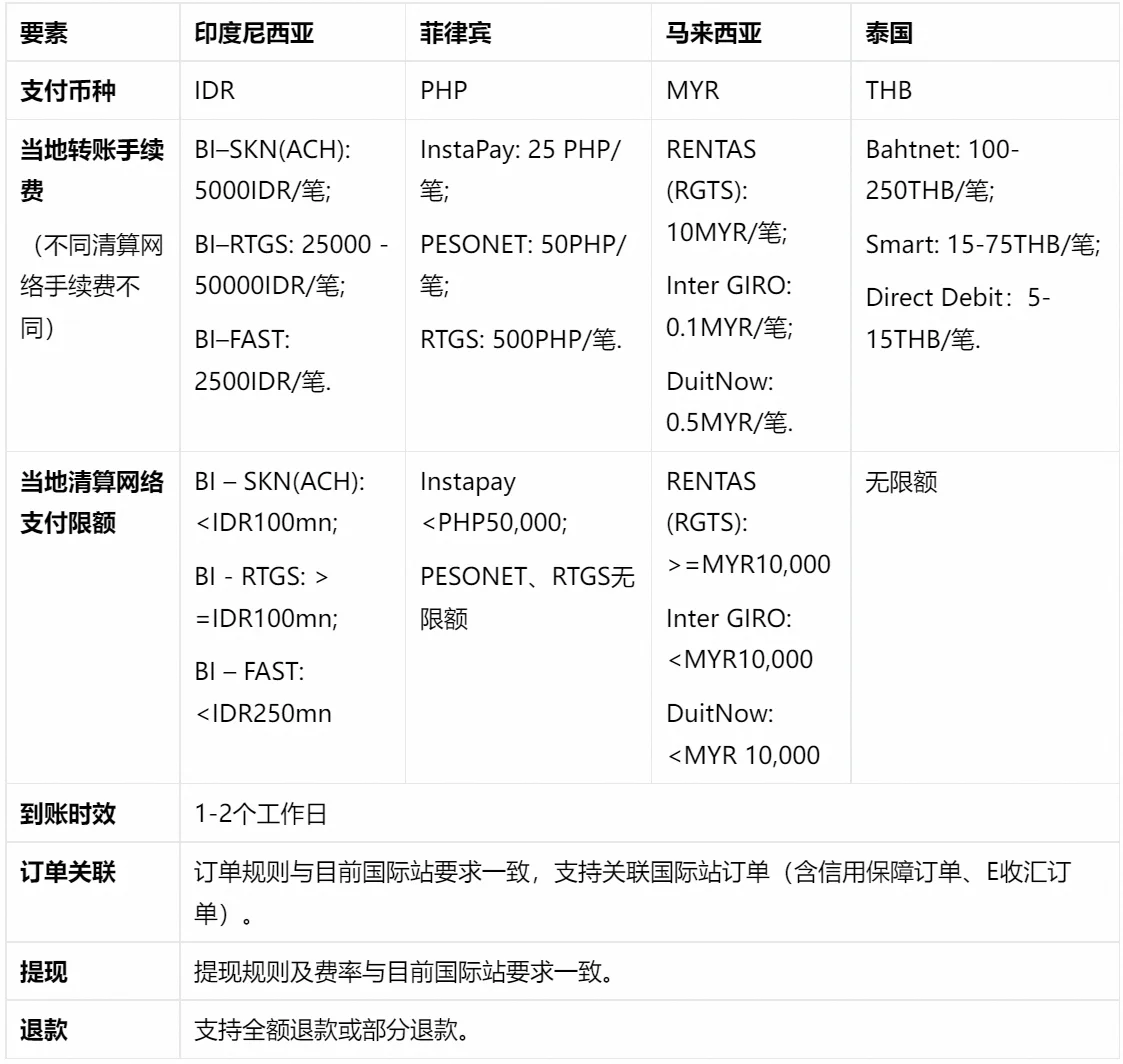 规则要点:中国大陆商家,涉及东南亚地区交易,支持开设东南亚四国本地收款账户为国际站订单的收款。